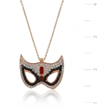 Gümüş Maske Bayan KolyeMaske kolyenin gizemi sizi de sarsın, rose renginin göz alıcılığı zirkon taşların ışıltısı ile bir araya gelerek yaşam enerjinizi artıracak. Sizin olduğu kadar sevdiklerinizin de keyifle takacağı gümüş maske bayan kolye en güzel hediyelerden biri olacaktır. Maske bayan kolye 925 ayar gümüşten imal edilmiştir. Gümüş üzerine rose altın kaplama yapılmıştır. Rose altın kaplama yapılan gümüş bayan kolye modelleri parlaklığını uzun süre muhafaza eder ve oksitlenmesi gecikir. Kolye üzerinde bulunan taşlar zirkondur. Gümüş olan zincir boyu ortalama 45 cm'dir. Bu maske bayan kolye el emeği ile üretilmiştir. Gümüş ve değerli taşlar nedeniyle belirtilen ürün ağırlığında ± %10 sapma olabilmektedir.
