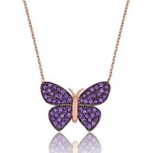 Gümüş Mor Kelebek Bayan Kolye