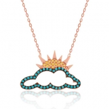 Gümüş Parçalı Bulutlu Güneş Bayan Kolye